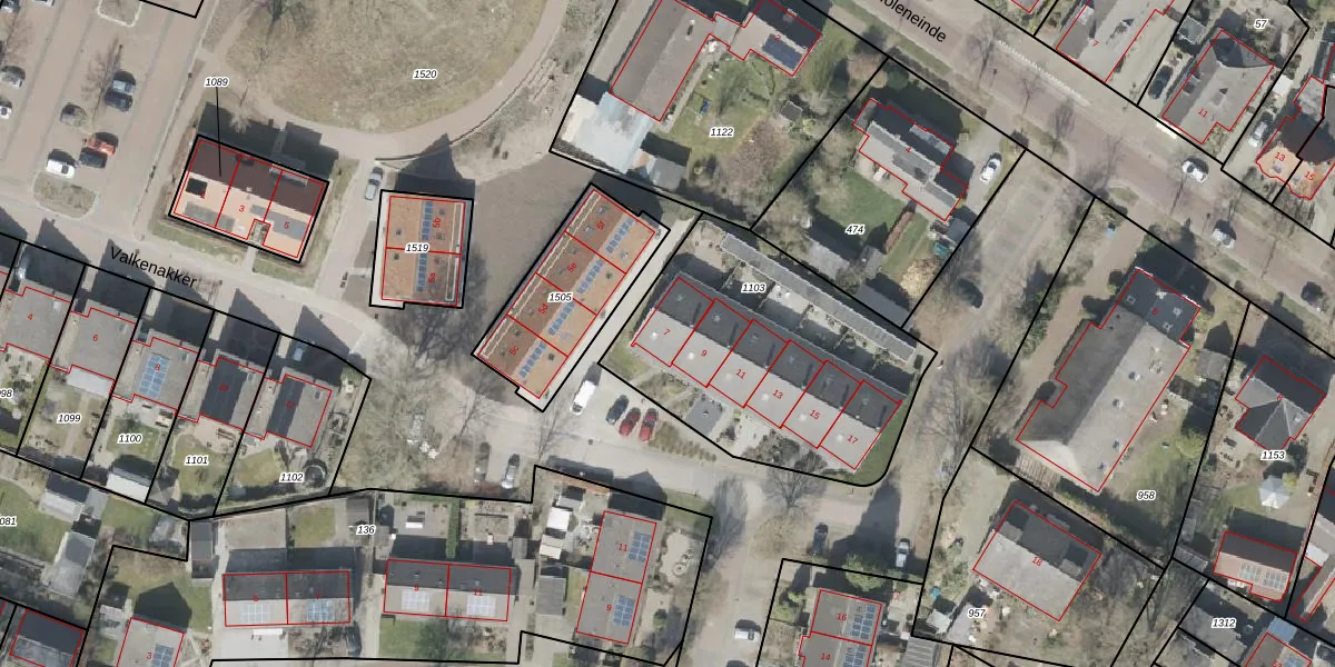 Het perceel waarop Valkenakker 7 staat heeft een oppervlakte van 1203 m². Dit is een zeer groot perceel. De perceeloppervlakte wordt geregistreerd door het Kadaster. Gedetailleerde informatie over de maten van dit perceel kunt u vinden in het rapport Kadastrale kaart met maatvoering van Valkenakker 7.