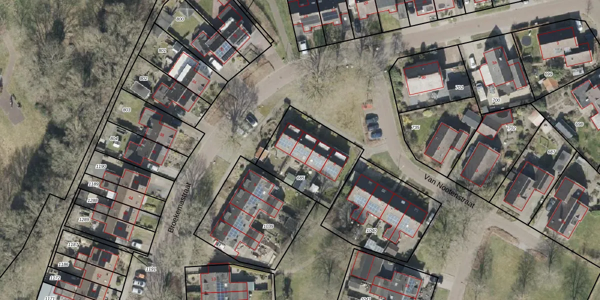 Het perceel waarop Van Nootenstraat 4 staat heeft een oppervlakte van 657 m². Dit is een groot perceel. De perceeloppervlakte wordt geregistreerd door het Kadaster. Gedetailleerde informatie over de maten van dit perceel kunt u vinden in het rapport Kadastrale kaart met maatvoering van Van Nootenstraat 4.