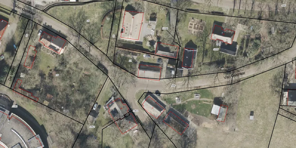 Van Osstraat 1 is gelegen op kadastraal perceel DVR00G21. Deze kadastrale aanduiding is uniek en wordt gebruikt door het Kadaster om eigendomsrechten en andere zakelijke rechten vast te leggen. Het perceel maakt onderdeel uit van de kadastrale gemeente Diever.