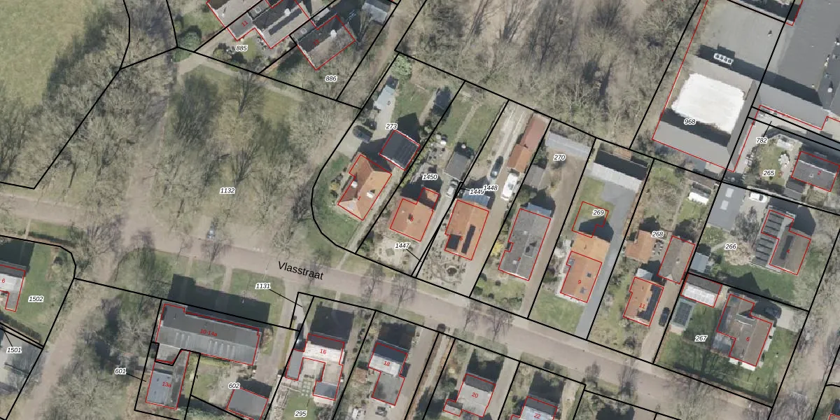 Het perceel waarop Vlasstraat 3 staat heeft een oppervlakte van 610 m². Dit is een groot perceel. De perceeloppervlakte wordt geregistreerd door het Kadaster. Gedetailleerde informatie over de maten van dit perceel kunt u vinden in het rapport Kadastrale kaart met maatvoering van Vlasstraat 3.