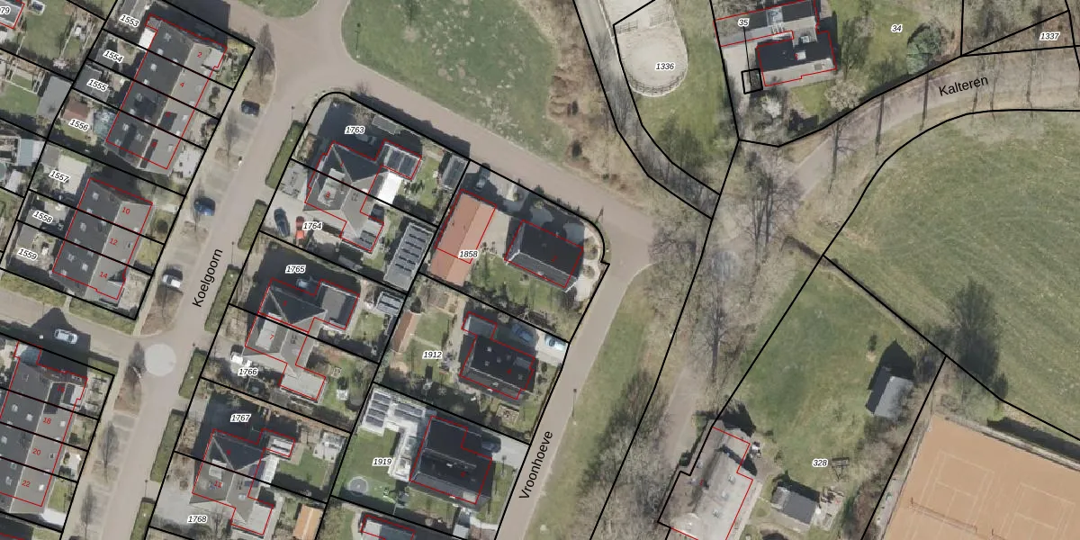 Het perceel waarop Vroonhoeve 2 staat heeft een oppervlakte van 685 m². Dit is een groot perceel. De perceeloppervlakte wordt geregistreerd door het Kadaster. Gedetailleerde informatie over de maten van dit perceel kunt u vinden in het rapport Kadastrale kaart met maatvoering van Vroonhoeve 2.