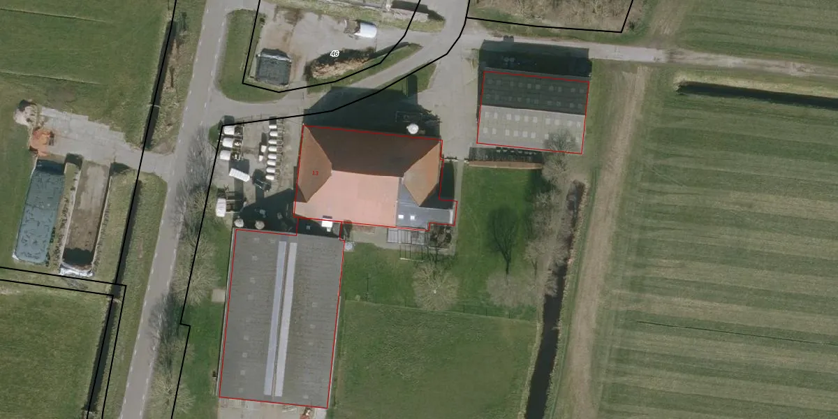 Het perceel waarop Nummer 13 staat heeft een oppervlakte van 9,8 ha. Dit is een zeer groot perceel. De perceeloppervlakte wordt geregistreerd door het Kadaster. Gedetailleerde informatie over de maten van dit perceel kunt u vinden in het rapport Kadastrale kaart met maatvoering van Nummer 13.