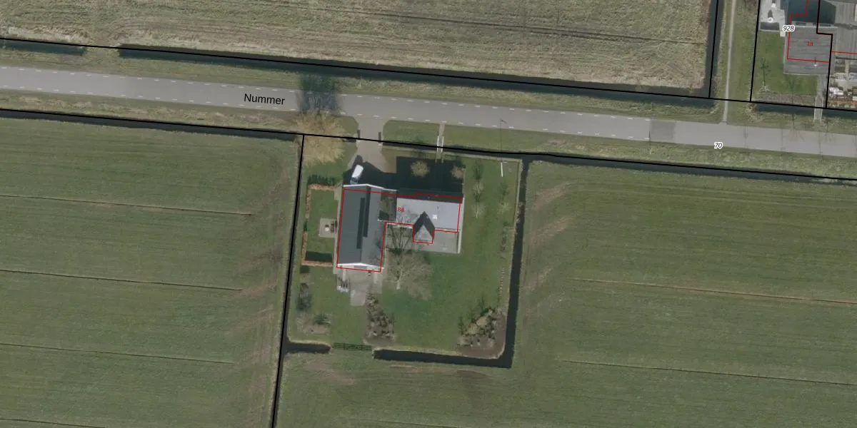 Het perceel waarop Nummer 8-a staat heeft een oppervlakte van 1,6 ha. Dit is een zeer groot perceel. De perceeloppervlakte wordt geregistreerd door het Kadaster. Gedetailleerde informatie over de maten van dit perceel kunt u vinden in het rapport Kadastrale kaart met maatvoering van Nummer 8-a.