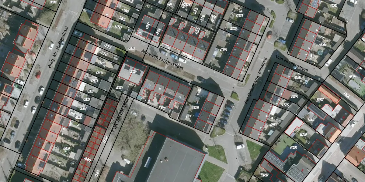Het perceel waarop Abraham Kuyperstraat 1 staat heeft een oppervlakte van 521 m². Dit is een groot perceel. De perceeloppervlakte wordt geregistreerd door het Kadaster. Gedetailleerde informatie over de maten van dit perceel kunt u vinden in het rapport Kadastrale kaart met maatvoering van Abraham Kuyperstraat 1.