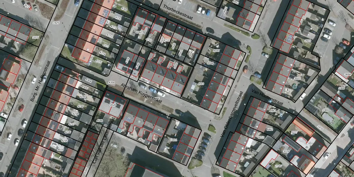Het perceel waarop Abraham Kuyperstraat 2 staat heeft een oppervlakte van 493 m². Dit is een groot perceel. De perceeloppervlakte wordt geregistreerd door het Kadaster. Gedetailleerde informatie over de maten van dit perceel kunt u vinden in het rapport Kadastrale kaart met maatvoering van Abraham Kuyperstraat 2.