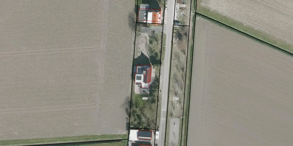 Het adres ligt op het perceel DTO02-G-1533, dat zich in de kadastrale gemeente Dinteloord bevindt. De gemiddelde perceelgrootte in Dinteloord is 1,4 ha. Dit perceel is kleiner: de perceeloppervlakte bedraagt 1320 m². Het grootste perceel in de kadastrale gemeente is 1,53 km². Het kleinste perceel heeft een oppervlakte van 1 m². Dit is het enige adres dat aanwezig is op het perceel. In de Basisregistratie Kadaster (BRK) werden de grenzen van het perceel geregistreerd op 29-07-2009.