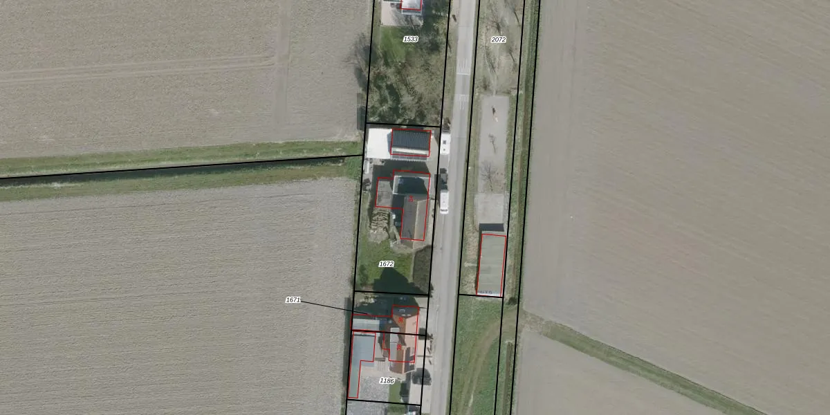 Het adres ligt op het perceel DTO02-G-1672, dat zich in de kadastrale gemeente Dinteloord bevindt. De gemiddelde perceelgrootte in Dinteloord is 1,4 ha. Dit perceel is kleiner: de perceeloppervlakte bedraagt 735 m². Het grootste perceel in de kadastrale gemeente is 1,53 km². Het kleinste perceel heeft een oppervlakte van 1 m². Dit is het enige adres dat aanwezig is op het perceel. De huidige grenzen van het perceel zijn digitaal in de Basisregistratie Kadaster (BRK) geregistreerd op 07-09-2011.
