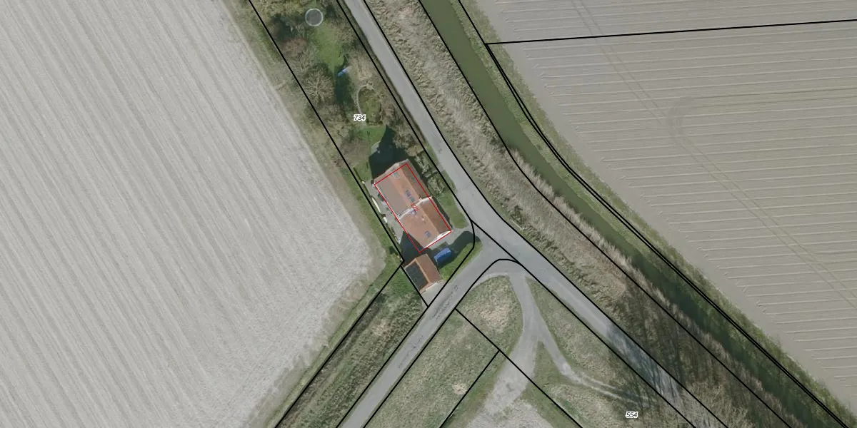 Het adres ligt op het perceel DTO02-H-734, dat zich in de kadastrale gemeente Dinteloord bevindt. De gemiddelde perceelgrootte in Dinteloord is 1,4 ha. Dit perceel is kleiner: de perceeloppervlakte bedraagt 1585 m². Het grootste perceel in de kadastrale gemeente is 1,53 km². Het kleinste perceel heeft een oppervlakte van 1 m². Op het perceel bevinden zich geen andere adressen. De huidige grenzen van het perceel zijn digitaal in de Basisregistratie Kadaster (BRK) geregistreerd op 19-08-2009.