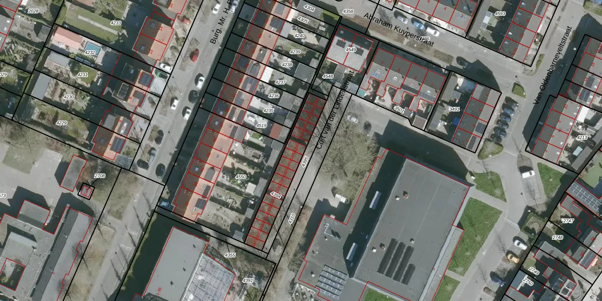 Het perceel waarop Cort van der Lindenstraat 12-G staat heeft een oppervlakte van 348 m². Dit is een groot perceel. De perceeloppervlakte wordt geregistreerd door het Kadaster. Gedetailleerde informatie over de maten van dit perceel kunt u vinden in het rapport Kadastrale kaart met maatvoering van Cort van der Lindenstraat 12-G.