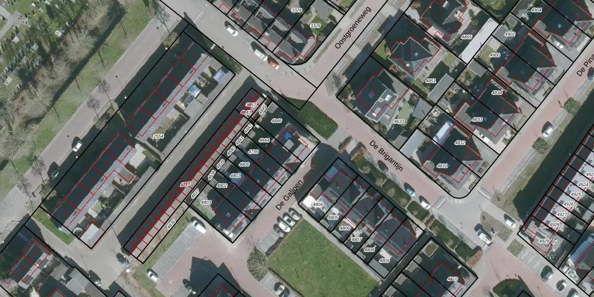 Gebruik de zoekbalk of klik op een perceel voor informatie over de adressen binnen dit perceel.
