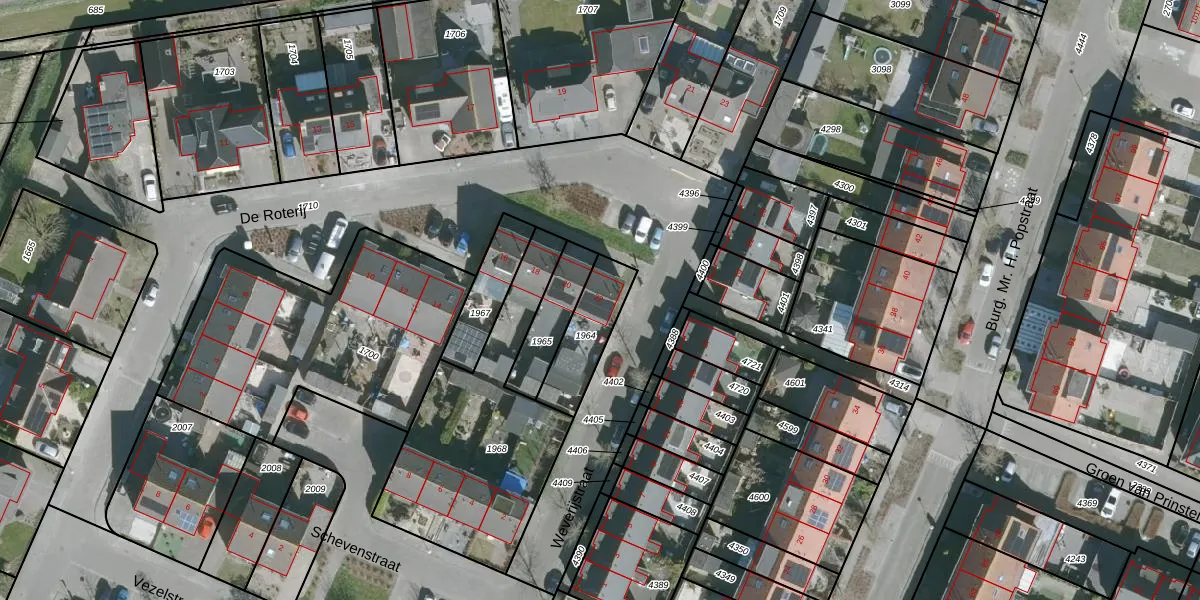Het perceel waarop De Roterij 22 staat heeft een oppervlakte van 188 m². Dit is een middelgroot perceel. De perceeloppervlakte wordt geregistreerd door het Kadaster. Gedetailleerde informatie over de maten van dit perceel kunt u vinden in het rapport Kadastrale kaart met maatvoering van De Roterij 22.