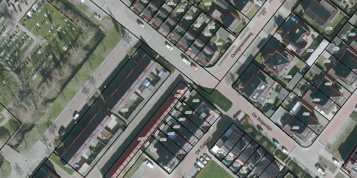 Het perceel waarop het adres ligt is DTO02-F-3557. De afkorting 'DTO02' staat voor kadastrale gemeente Dinteloord. Het perceel is kleiner dan gemiddeld in Dinteloord. Het perceel is 54 m² groot, terwijl het gemiddelde ligt op 1,4 ha. Het grootste perceel in de kadastrale gemeente is 1,53 km². Het kleinste perceel heeft een oppervlakte van 1 m². Er zijn 3 adressen aanwezig op het perceel. In de Basisregistratie Kadaster (BRK) werden de grenzen van het perceel geregistreerd op 04-04-2018.