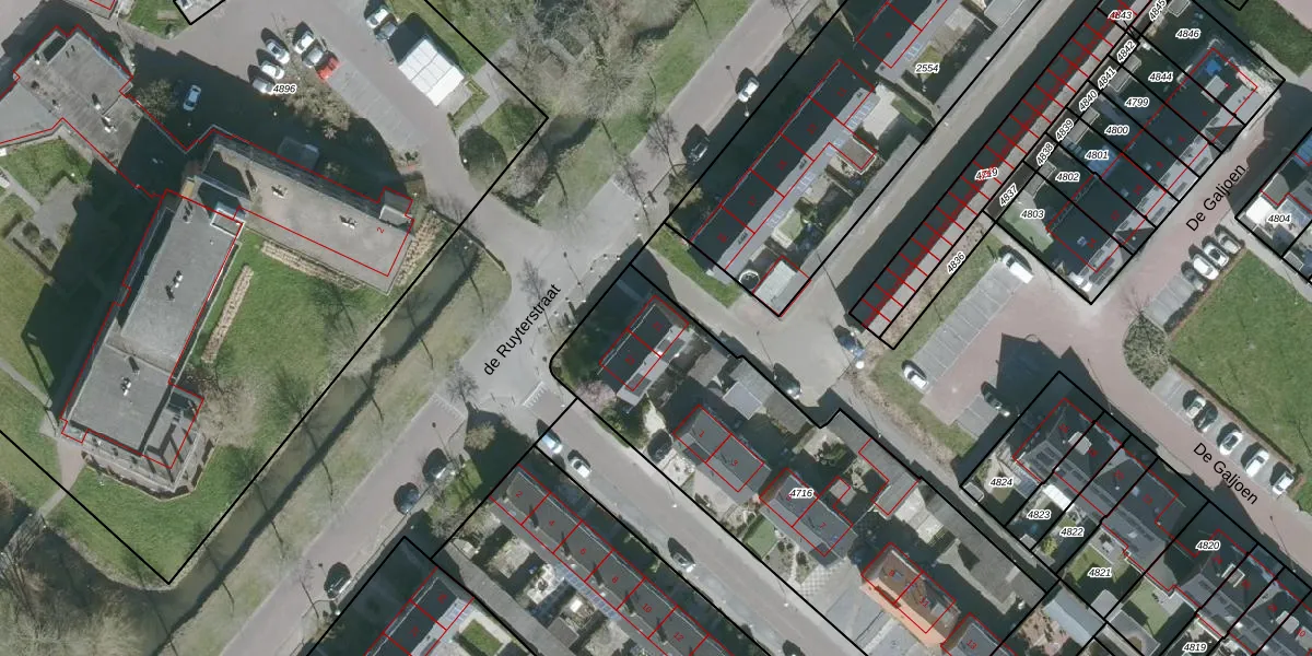 de Ruyterstraat 21 is gelegen op kadastraal perceel DTO02F4716. Deze kadastrale aanduiding is uniek en wordt gebruikt door het Kadaster om eigendomsrechten en andere zakelijke rechten vast te leggen. Het perceel maakt onderdeel uit van de kadastrale gemeente Dinteloord.