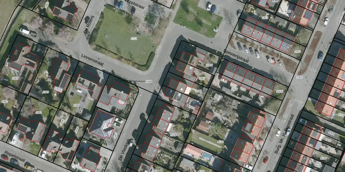 Gebruik de zoekbalk of klik op een perceel voor informatie over de adressen binnen dit perceel.