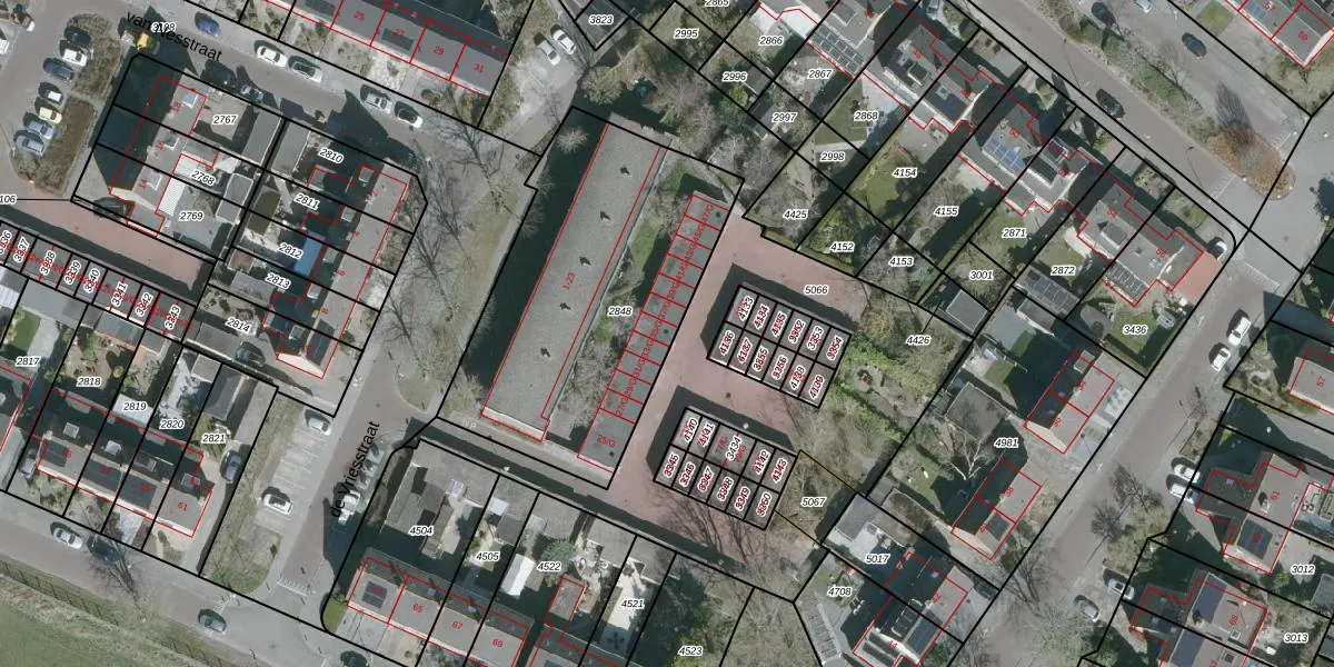 Het perceel waarop de Vriesstraat 35-G staat heeft een oppervlakte van 1420 m². Dit is een zeer groot perceel. De perceeloppervlakte wordt geregistreerd door het Kadaster. Gedetailleerde informatie over de maten van dit perceel kunt u vinden in het rapport Kadastrale kaart met maatvoering van de Vriesstraat 35-G.