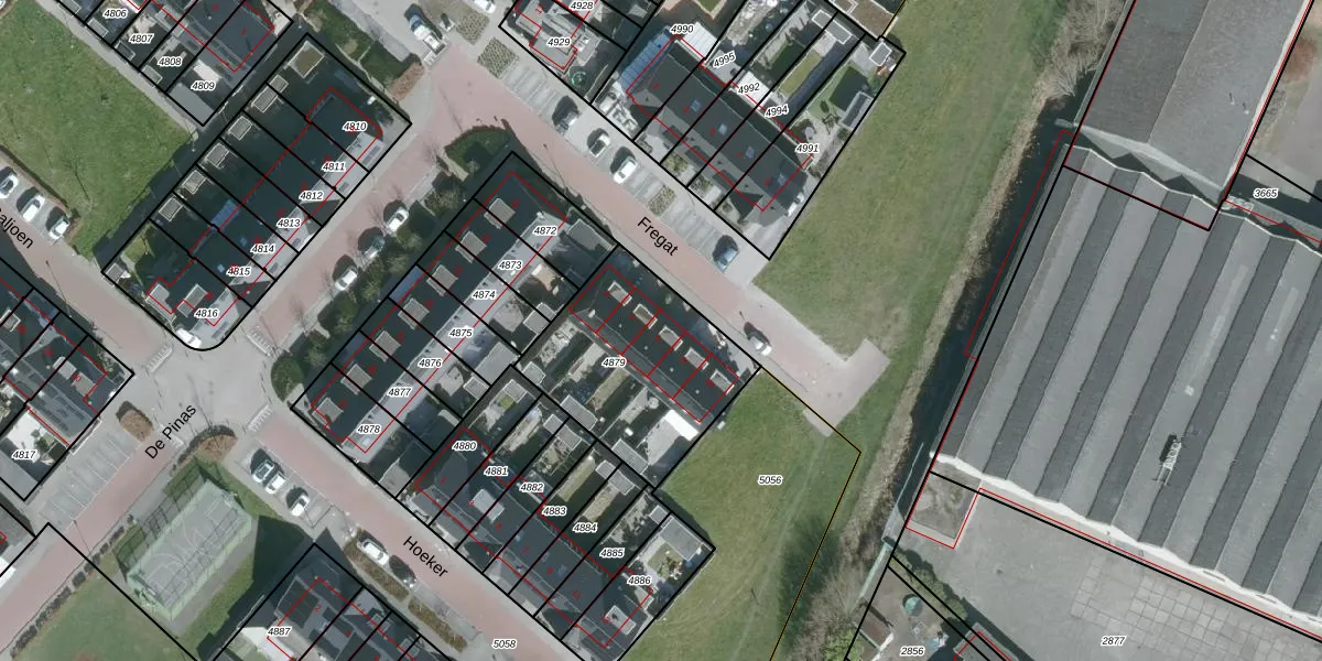 Het perceel waarop Fregat 6 staat heeft een oppervlakte van 695 m². Dit is een groot perceel. De perceeloppervlakte wordt geregistreerd door het Kadaster. Gedetailleerde informatie over de maten van dit perceel kunt u vinden in het rapport Kadastrale kaart met maatvoering van Fregat 6.