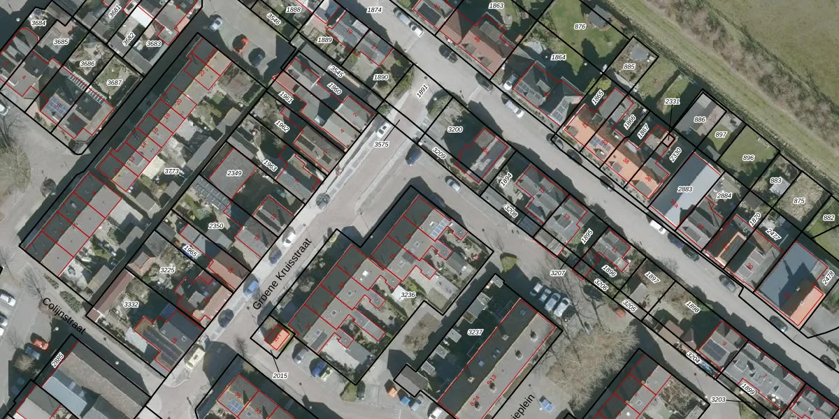Groene Kruisstraat 1 is gelegen op kadastraal perceel DTO02F3236. Deze kadastrale aanduiding is uniek en wordt gebruikt door het Kadaster om eigendomsrechten en andere zakelijke rechten vast te leggen. Het perceel maakt onderdeel uit van de kadastrale gemeente Dinteloord.