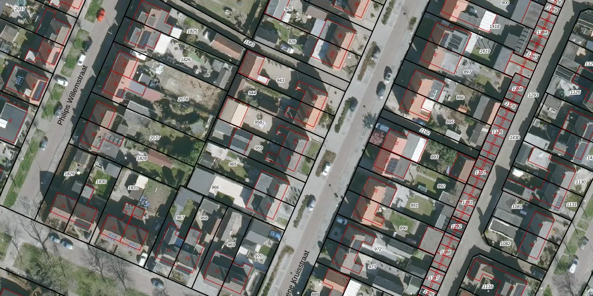 Het perceel waarop Groene Kruisstraat 106 staat heeft een oppervlakte van 295 m². Dit is een middelgroot perceel. De perceeloppervlakte wordt geregistreerd door het Kadaster. Gedetailleerde informatie over de maten van dit perceel kunt u vinden in het rapport Kadastrale kaart met maatvoering van Groene Kruisstraat 106.