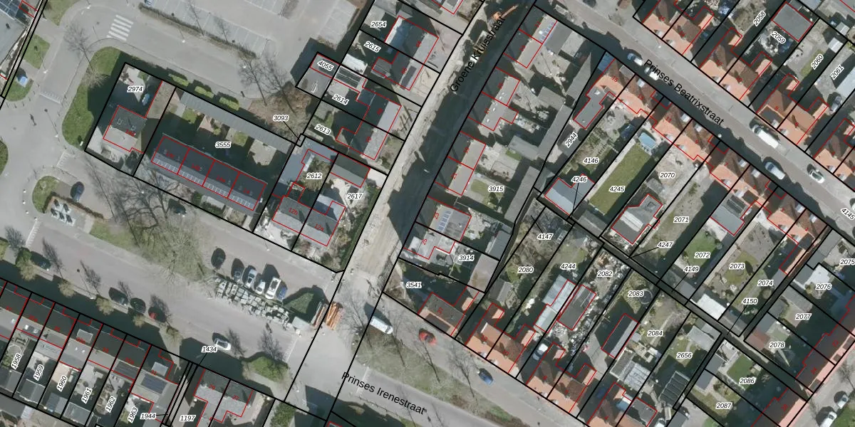 Het perceel waarop Groene Kruisstraat 23 staat heeft een oppervlakte van 1183 m². Dit is een zeer groot perceel. De perceeloppervlakte wordt geregistreerd door het Kadaster. Gedetailleerde informatie over de maten van dit perceel kunt u vinden in het rapport Kadastrale kaart met maatvoering van Groene Kruisstraat 23.