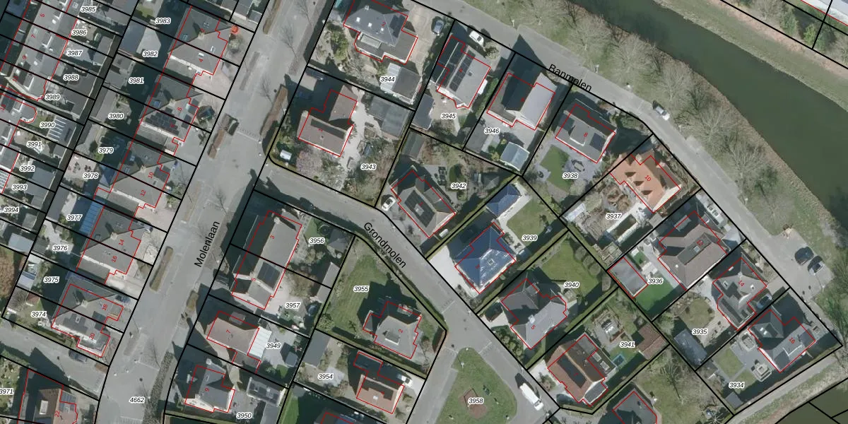 Het perceel waarop Grondmolen 1 staat heeft een oppervlakte van 533 m². Dit is een groot perceel. De perceeloppervlakte wordt geregistreerd door het Kadaster. Gedetailleerde informatie over de maten van dit perceel kunt u vinden in het rapport Kadastrale kaart met maatvoering van Grondmolen 1.