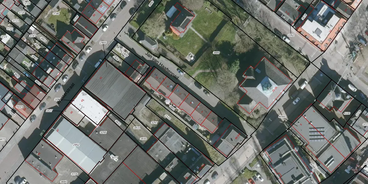 Het perceel waarop Jan van Haaftenpad 7 staat heeft een oppervlakte van 910 m². Dit is een groot perceel. De perceeloppervlakte wordt geregistreerd door het Kadaster. Gedetailleerde informatie over de maten van dit perceel kunt u vinden in het rapport Kadastrale kaart met maatvoering van Jan van Haaftenpad 7.