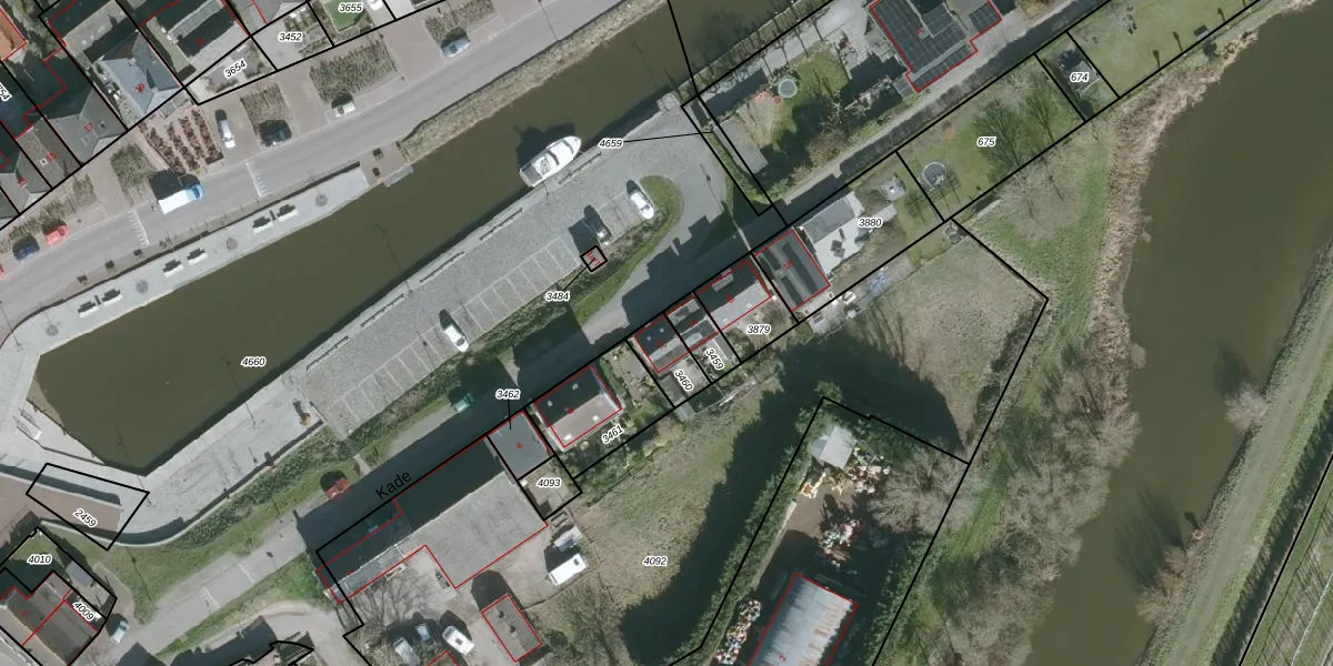Het perceel waarop Kade 12 staat heeft een oppervlakte van 90 m². Dit is een klein perceel. De perceeloppervlakte wordt geregistreerd door het Kadaster. Gedetailleerde informatie over de maten van dit perceel kunt u vinden in het rapport Kadastrale kaart met maatvoering van Kade 12.