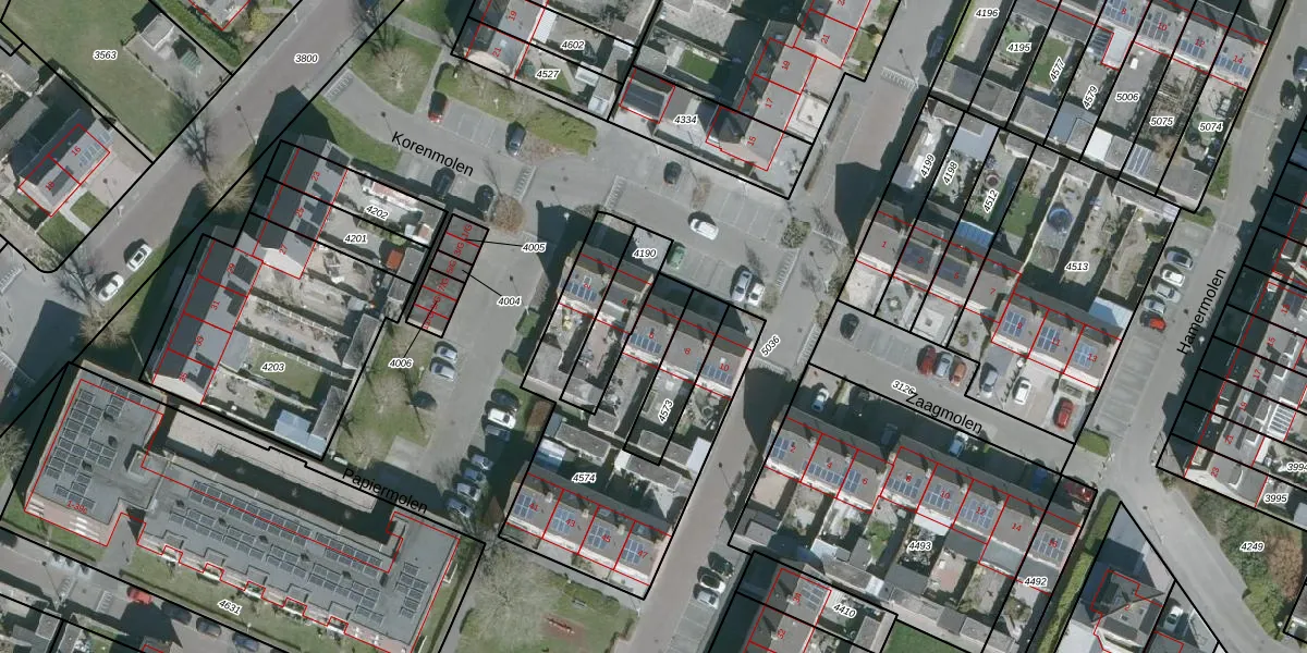 Het perceel waarop Korenmolen 6 staat heeft een oppervlakte van 1016 m². Dit is een zeer groot perceel. De perceeloppervlakte wordt geregistreerd door het Kadaster. Gedetailleerde informatie over de maten van dit perceel kunt u vinden in het rapport Kadastrale kaart met maatvoering van Korenmolen 6.