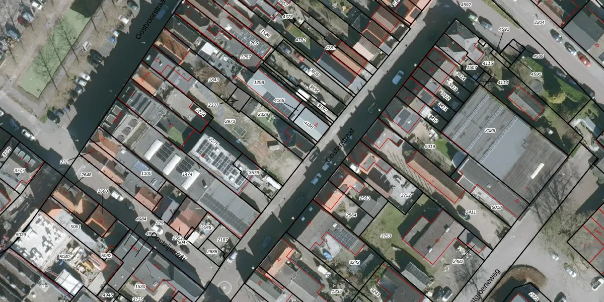 Het perceel waarop Oosterstraat 12 staat heeft een oppervlakte van 166 m². Dit is een middelgroot perceel. De perceeloppervlakte wordt geregistreerd door het Kadaster. Gedetailleerde informatie over de maten van dit perceel kunt u vinden in het rapport Kadastrale kaart met maatvoering van Oosterstraat 12.