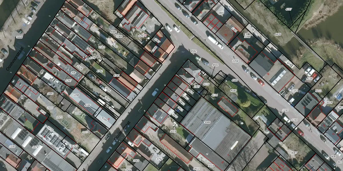 Het perceel waarop Oosterstraat 5-a staat heeft een oppervlakte van 80 m². Dit is een klein perceel. De perceeloppervlakte wordt geregistreerd door het Kadaster. Gedetailleerde informatie over de maten van dit perceel kunt u vinden in het rapport Kadastrale kaart met maatvoering van Oosterstraat 5-a.