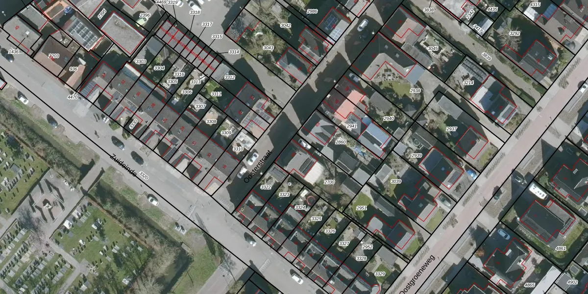 Gebruik de zoekbalk of klik op een perceel voor informatie over de adressen binnen dit perceel.