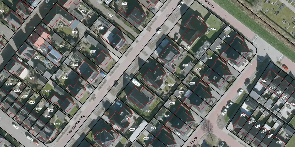 Het perceel waarop Oostgroeneweg 5 staat heeft een oppervlakte van 495 m². Dit is een groot perceel. De perceeloppervlakte wordt geregistreerd door het Kadaster. Gedetailleerde informatie over de maten van dit perceel kunt u vinden in het rapport Kadastrale kaart met maatvoering van Oostgroeneweg 5.