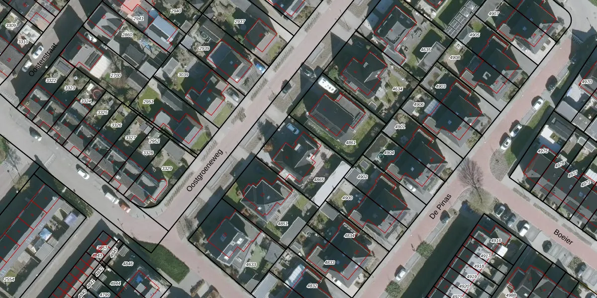 Het perceel waarop Oostgroeneweg 9 staat heeft een oppervlakte van 495 m². Dit is een groot perceel. De perceeloppervlakte wordt geregistreerd door het Kadaster. Gedetailleerde informatie over de maten van dit perceel kunt u vinden in het rapport Kadastrale kaart met maatvoering van Oostgroeneweg 9.