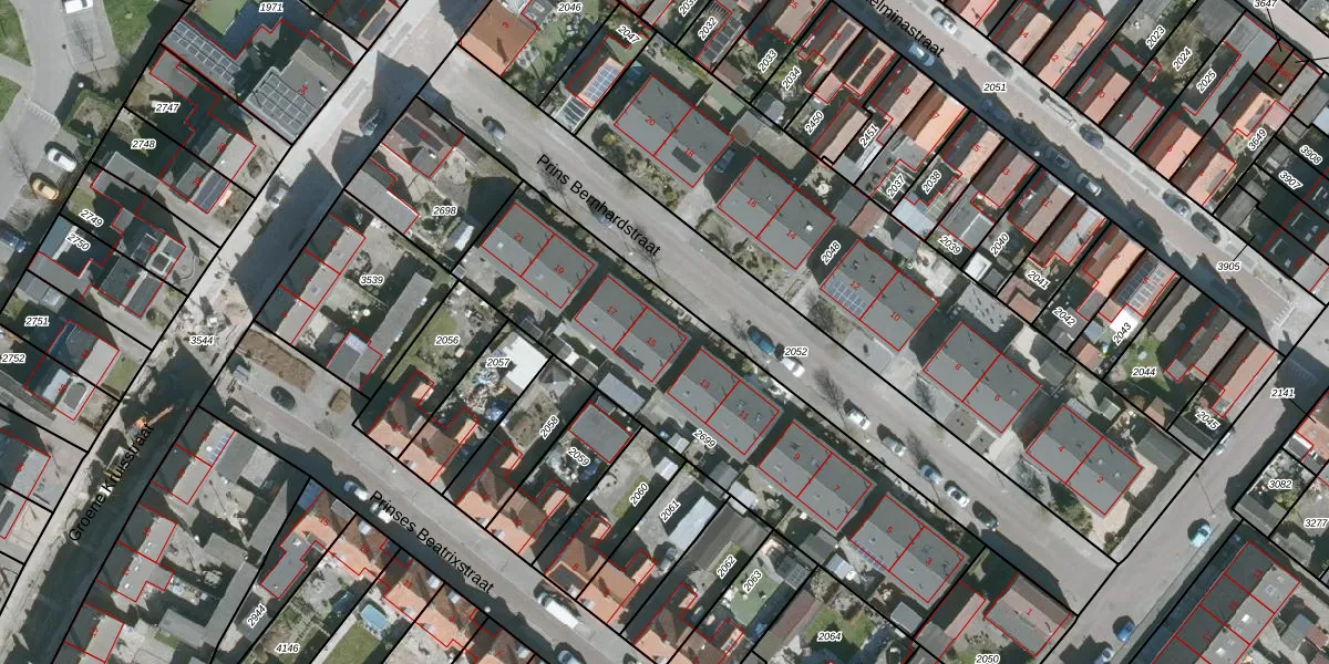 Het perceel waarop Prins Bernhardstraat 15 staat heeft een oppervlakte van 1575 m². Dit is een zeer groot perceel. De perceeloppervlakte wordt geregistreerd door het Kadaster. Gedetailleerde informatie over de maten van dit perceel kunt u vinden in het rapport Kadastrale kaart met maatvoering van Prins Bernhardstraat 15.