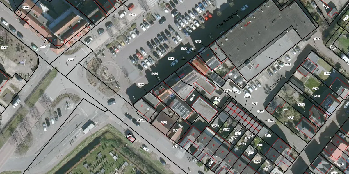 Het perceel waarop Raadhuisplein 39-a staat heeft een oppervlakte van 318 m². Dit is een groot perceel. De perceeloppervlakte wordt geregistreerd door het Kadaster. Gedetailleerde informatie over de maten van dit perceel kunt u vinden in het rapport Kadastrale kaart met maatvoering van Raadhuisplein 39-a.