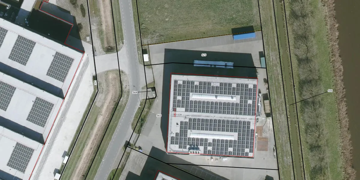 Het perceel waarop het adres ligt is DTO02-C-563. De afkorting 'DTO02' staat voor kadastrale gemeente Dinteloord. De gemiddelde perceelgrootte in Dinteloord is 1,4 ha. Dit perceel is kleiner: de perceeloppervlakte bedraagt 4030 m². Het grootste perceel in de kadastrale gemeente is 1,53 km². Het kleinste perceel heeft een oppervlakte van 1 m². Er zijn 2 adressen aanwezig op het perceel. De huidige grenzen van het perceel zijn digitaal in de Basisregistratie Kadaster (BRK) geregistreerd op 26-02-2020.