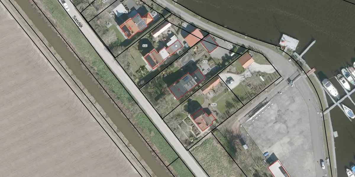 Het perceel waarop Sasdijk 6 staat heeft een oppervlakte van 1080 m². Dit is een zeer groot perceel. De perceeloppervlakte wordt geregistreerd door het Kadaster. Gedetailleerde informatie over de maten van dit perceel kunt u vinden in het rapport Kadastrale kaart met maatvoering van Sasdijk 6.
