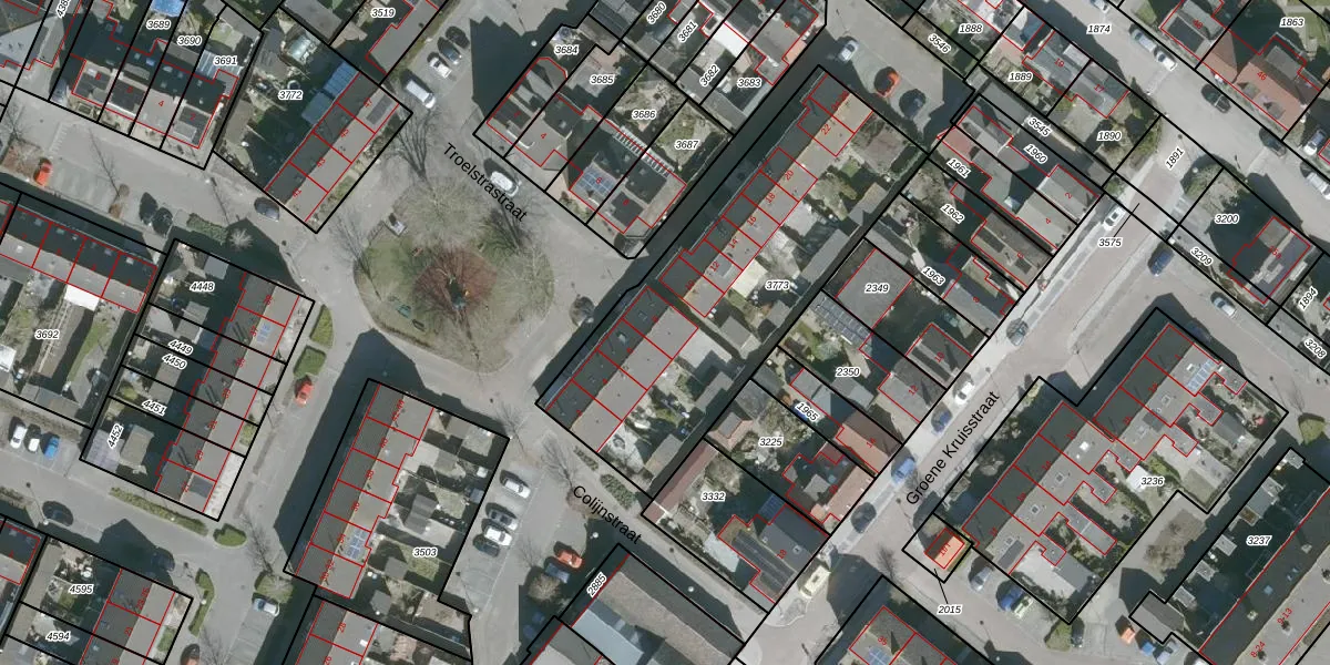 Het adres ligt op het perceel DTO02-F-3773, dat zich in de kadastrale gemeente Dinteloord bevindt. De gemiddelde perceelgrootte in Dinteloord is 1,4 ha. Dit perceel is kleiner: de perceeloppervlakte bedraagt 1445 m². Het kleinste perceel in de kadastrale gemeente is 1 m² groot. De grootste perceeloppervlakte is 1,53 km². Op het perceel zijn 13 adressen aanwezig. De laatste wijziging in het de Basisregistratie Kadaster (BRK) was op 22-07-2009.