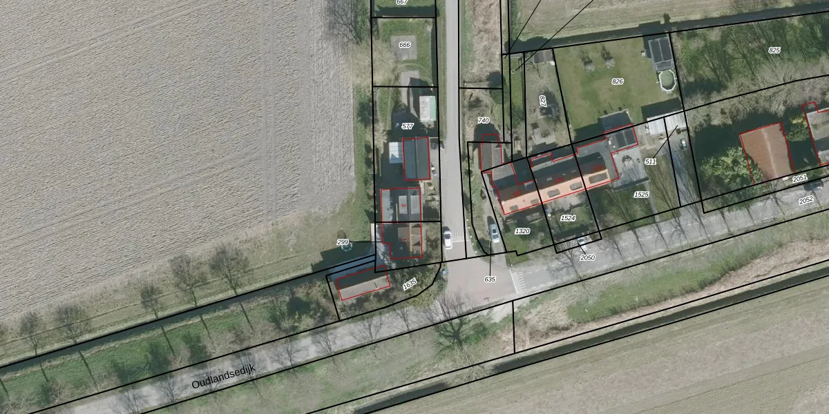 Het adres ligt op het perceel DTO02-A-577, dat zich in de kadastrale gemeente Dinteloord bevindt. De gemiddelde perceelgrootte in Dinteloord is 1,4 ha. Dit perceel is kleiner: de perceeloppervlakte bedraagt 518 m². Het kleinste perceel in de kadastrale gemeente is 1 m² groot. De grootste perceeloppervlakte is 1,53 km². Op het perceel bevinden zich geen andere adressen. In de Basisregistratie Kadaster (BRK) werden de grenzen van het perceel geregistreerd op 03-09-2009.