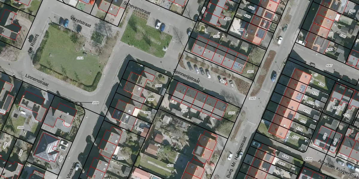 Het perceel waarop Spinnerijstraat 9 staat heeft een oppervlakte van 357 m². Dit is een groot perceel. De perceeloppervlakte wordt geregistreerd door het Kadaster. Gedetailleerde informatie over de maten van dit perceel kunt u vinden in het rapport Kadastrale kaart met maatvoering van Spinnerijstraat 9.