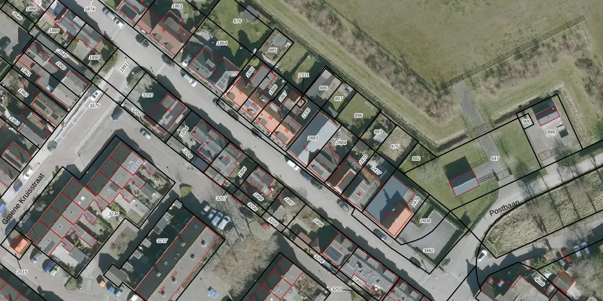 Gebruik de zoekbalk of klik op een perceel voor informatie over de adressen binnen dit perceel.