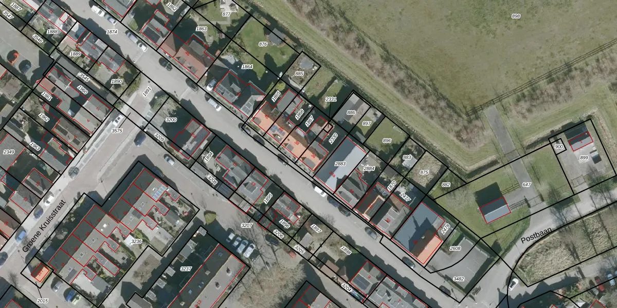 Gebruik de zoekbalk of klik op een perceel voor informatie over de adressen binnen dit perceel.