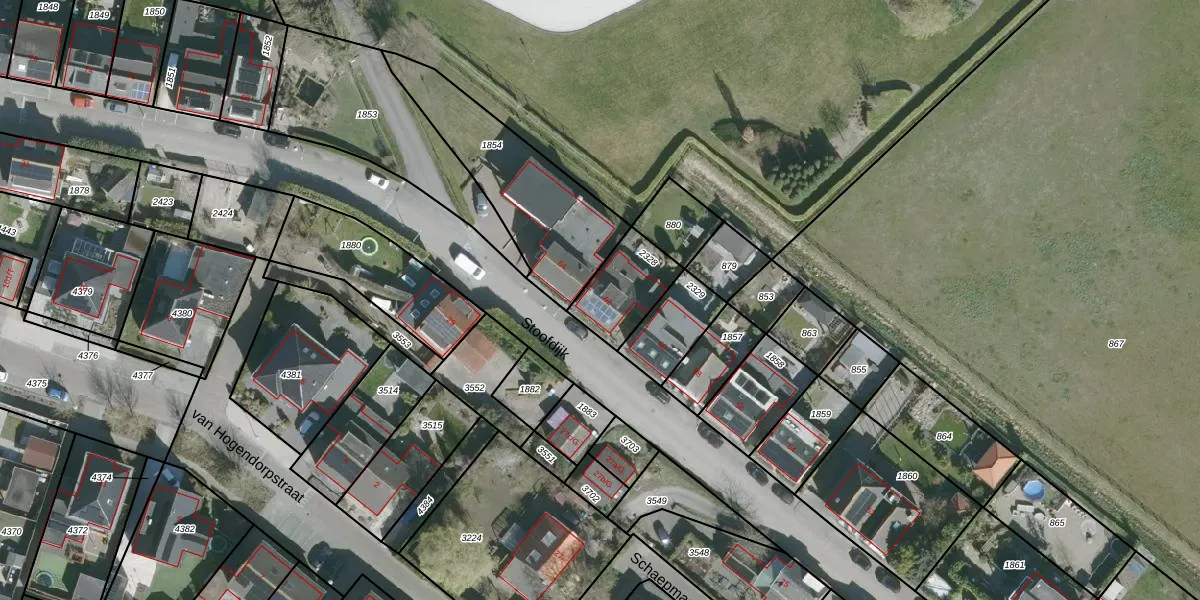 Gebruik de zoekbalk of klik op een perceel voor informatie over de adressen binnen dit perceel.