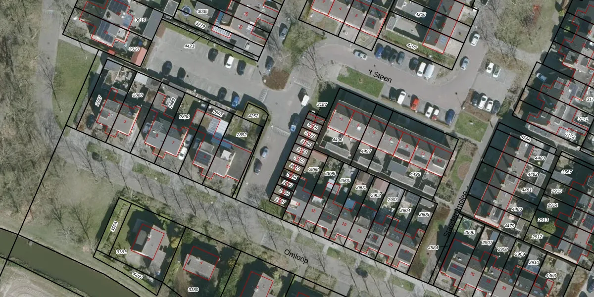Gebruik de zoekbalk of klik op een perceel voor informatie over de adressen binnen dit perceel.