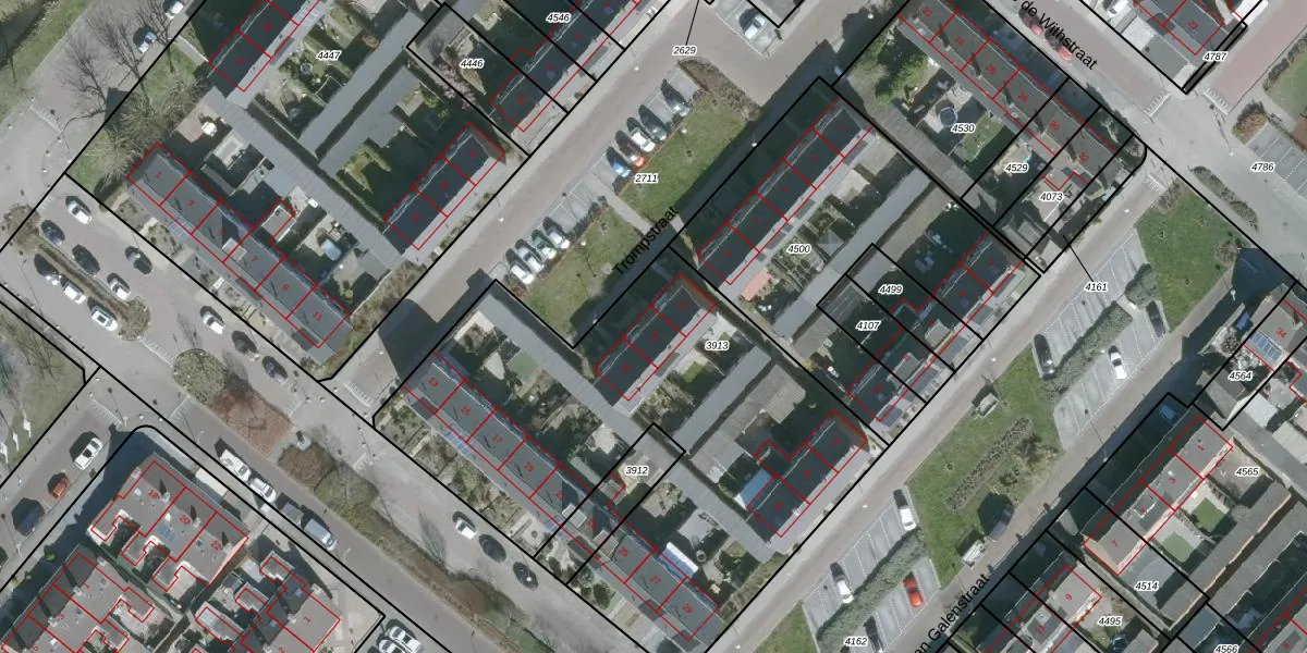 Het perceel waarop Trompstraat 13 staat heeft een oppervlakte van 2537 m². Dit is een zeer groot perceel. De perceeloppervlakte wordt geregistreerd door het Kadaster. Gedetailleerde informatie over de maten van dit perceel kunt u vinden in het rapport Kadastrale kaart met maatvoering van Trompstraat 13.