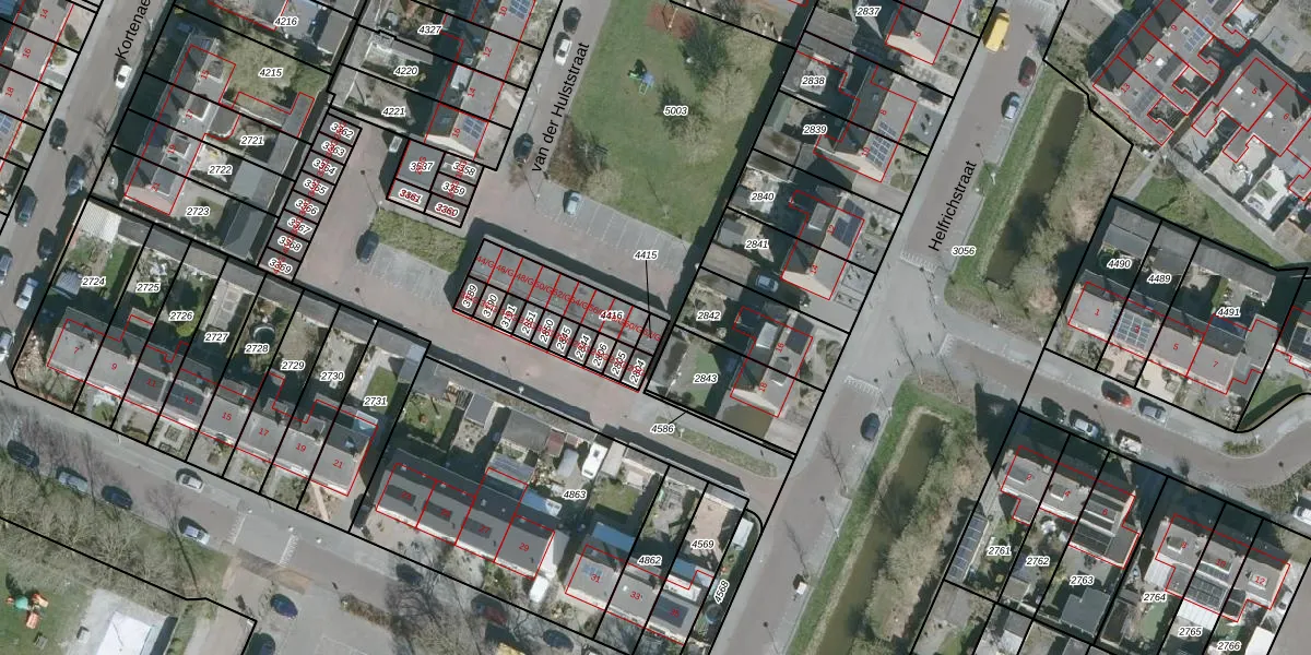 Gebruik de zoekbalk of klik op een perceel voor informatie over de adressen binnen dit perceel.