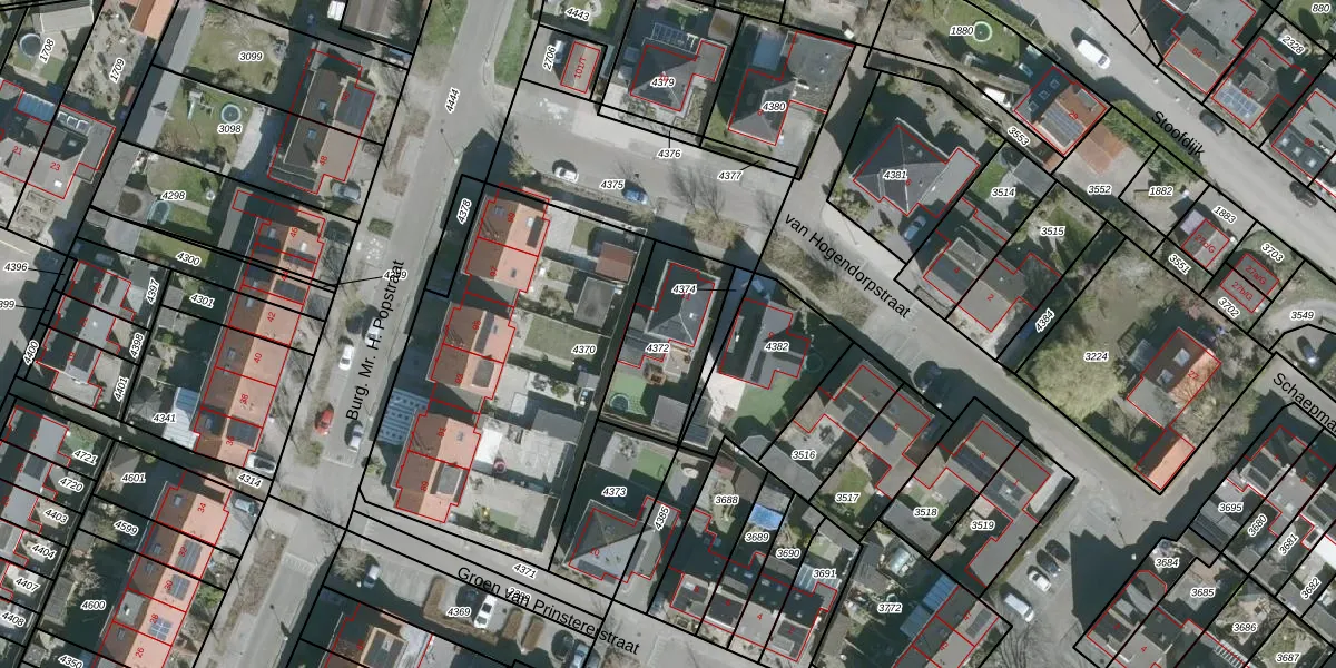 Gebruik de zoekbalk of klik op een perceel voor informatie over de adressen binnen dit perceel.