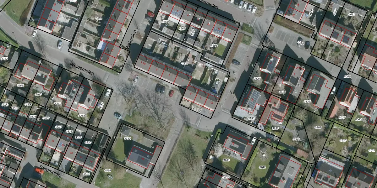 Het perceel waarop Weidemolen 9 staat heeft een oppervlakte van 1120 m². Dit is een zeer groot perceel. De perceeloppervlakte wordt geregistreerd door het Kadaster. Gedetailleerde informatie over de maten van dit perceel kunt u vinden in het rapport Kadastrale kaart met maatvoering van Weidemolen 9.