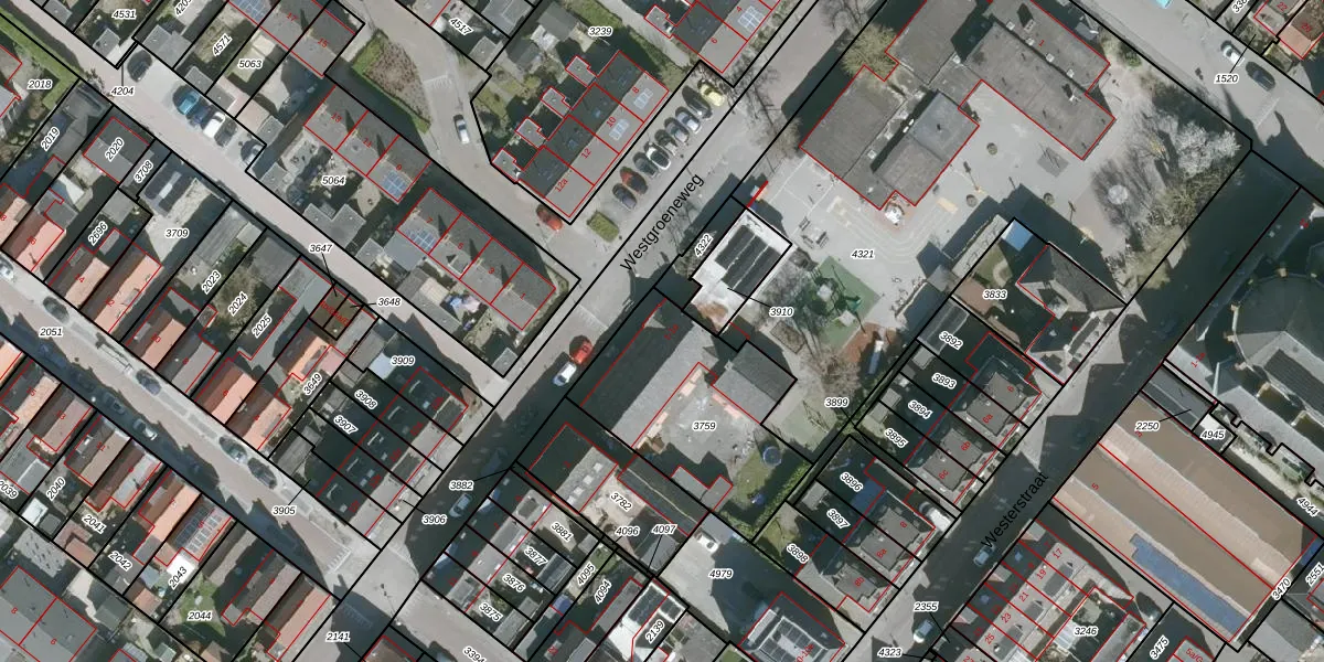 Westgroeneweg 1 is gelegen op kadastraal perceel DTO02F3759. Deze kadastrale aanduiding is uniek en wordt gebruikt door het Kadaster om eigendomsrechten en andere zakelijke rechten vast te leggen. Het perceel maakt onderdeel uit van de kadastrale gemeente Dinteloord.