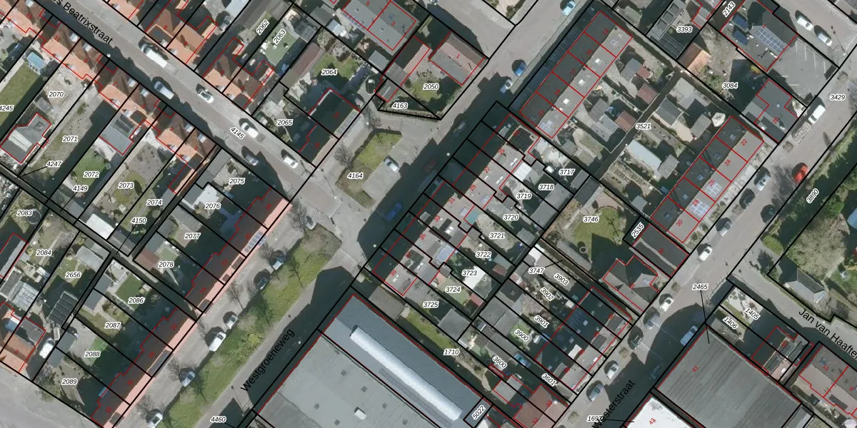 Gebruik de zoekbalk of klik op een perceel voor informatie over de adressen binnen dit perceel.