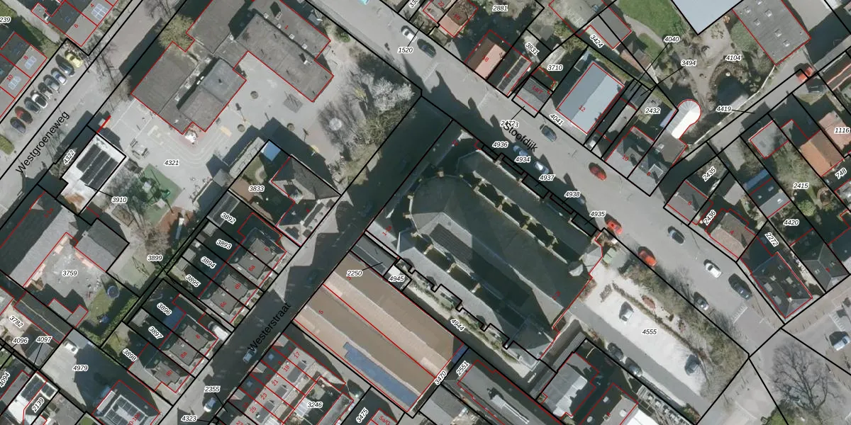 Het perceel waarop het adres ligt is DTO02-F-4555. De afkorting 'DTO02' staat voor kadastrale gemeente Dinteloord. Het perceel is 2512 m² groot. Dat is kleiner dan de gemiddelde perceeloppervlakte in Dinteloord, dat op 1,4 ha ligt. De grootste perceeloppervlakte in de kadastrale gemeente is 1,53 km². De kleinste oppervlakte bedraagt 1 m². Op het perceel zijn 28 adressen aanwezig. De huidige grenzen van het perceel zijn digitaal in de Basisregistratie Kadaster (BRK) geregistreerd op 09-04-2020.